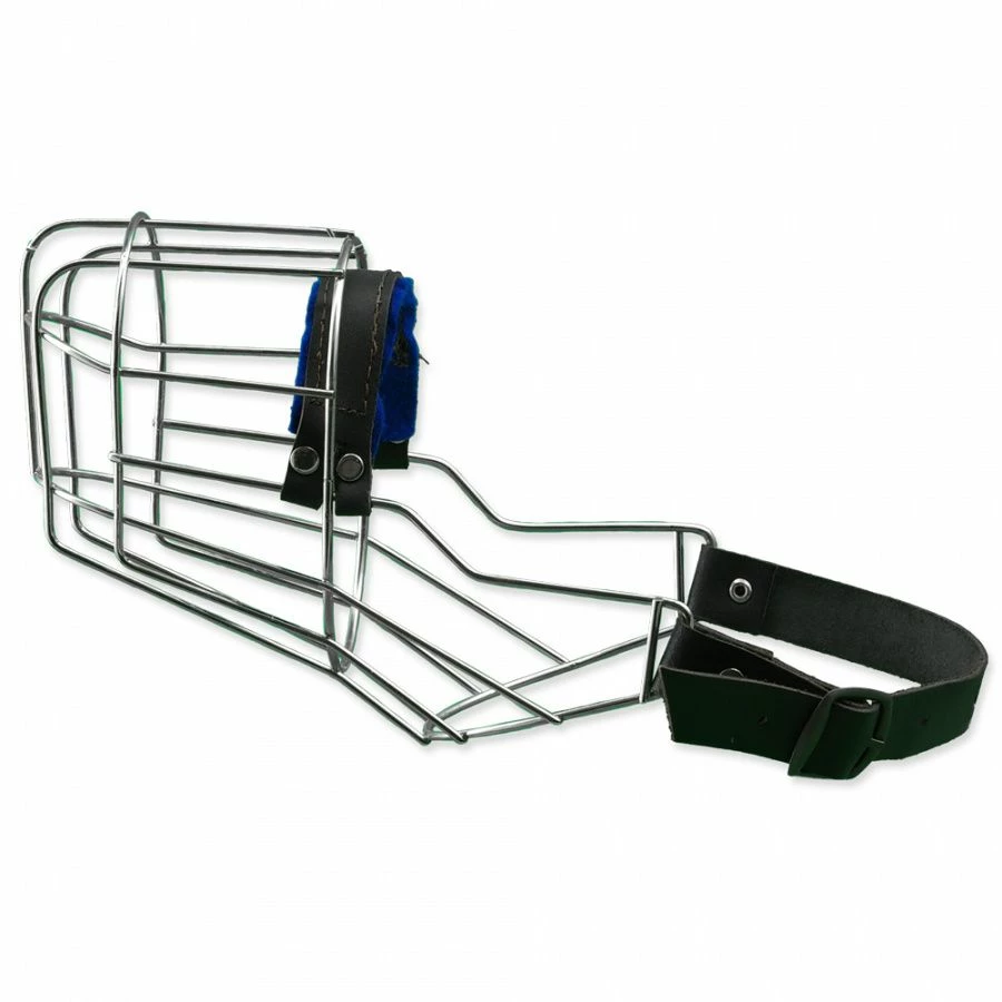 Museau en métal avec lanières de cuir.