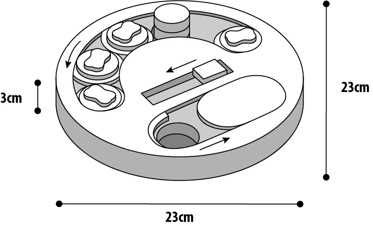 Jouet idéal pour le jeu et le dressage. Ce jeu de puzzle durable possède des planches en bois solides et peut être mordu en toute sécurité. Vous pouvez facilement y cacher des snacks et des friandises et il ne vous reste plus qu’à attendre que votre animal fasse glisser ou soulève les couvercles pour trouver la friandise ! Le jouet a des trous pour aider à la recherche. Il est facile à entretenir et à nettoyer. Peut également être utilisé pour d’autres animaux de compagnie, tels que les lapins et les chats.